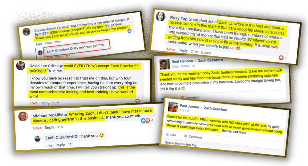 *Earnings and income representations made by Zach Crawford, Psychologically Unemployable LLC, and Psychologically Unemployable LLC and their advertisers/sponsors (collectively, "Psychologically Unemployable") are aspirational statements only of your earnings potential. These results are not typical and results will vary. The results on this page are OUR results and from years of testing. We can in NO way guarantee you will get similar results The sales figures stated above are our personal sales figures and those of students that worked extremely hard. Please understand my results are not typical, I’m not implying you’ll duplicate them (or do anything for that matter). I have the benefit of doing internet marketing for 6+ years, and have an established following as a result. The average person who follows any “how to” information gets little to no results. I’m using these references for example purposes only. Your results will vary and depend on many factors …including but not limited to your background, experience, and work ethic. All business entails risk as well as massive and consistent effort and action. If you're not willing to accept that, this is not for you.